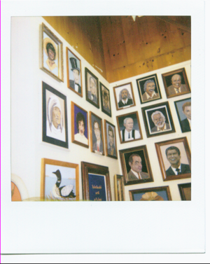 seed art portraits: kenny rogers, prince, ronald regan, mother theresa, a loon.
